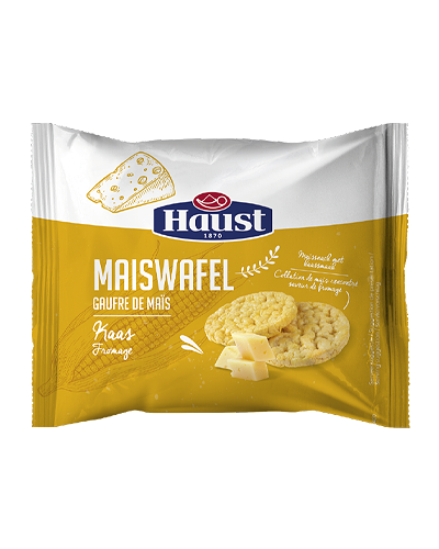 Knapperige maiswafels met kaassmaak. De on-the-go consumptietrend vertaald naar gezonder alternatief voor chips.